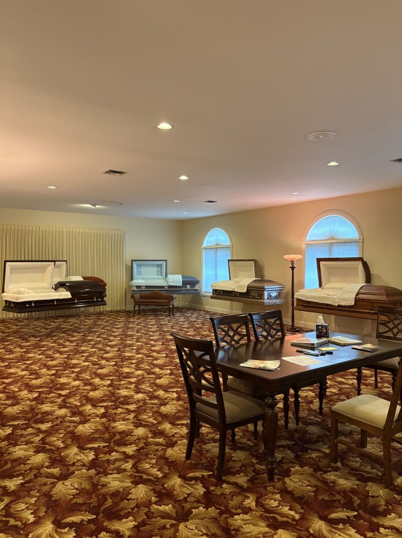Our beautiful and spacious reception area welcomes you into our funeral home. It is the ideal place for families to greet visitors. The lounge area offers a place where family and friends may visit, relax, and enjoy a cup of coffee.